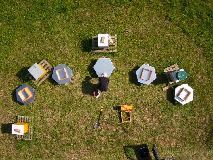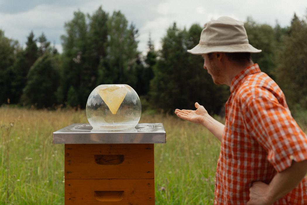 Bee Art Lab is a space for experimentation together with the bees. Bee Art Lab was created during research project to develop different add-ons for the standard Langstroth hive type. This most wildly used commercial hive type is optimised for honey production. The idea of this lab is to create new extensions for the hives to make possible other connection between humans and the bees.