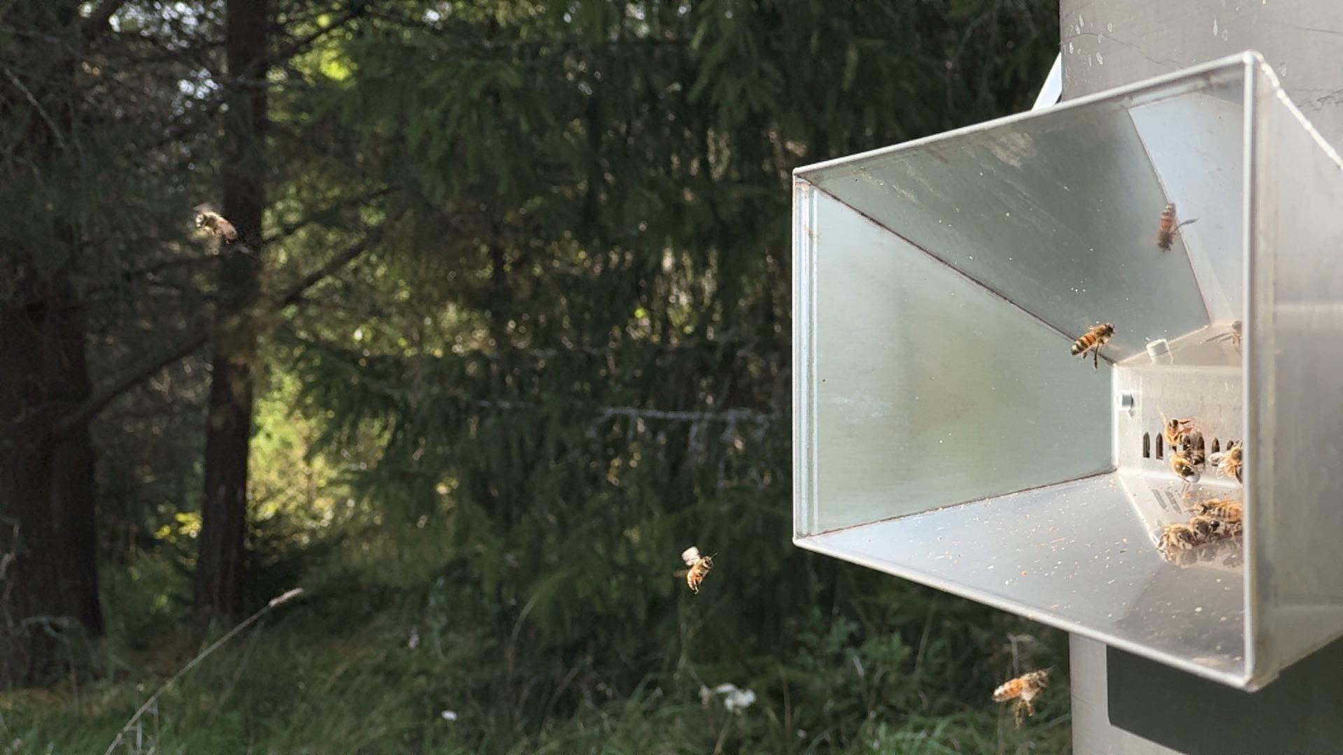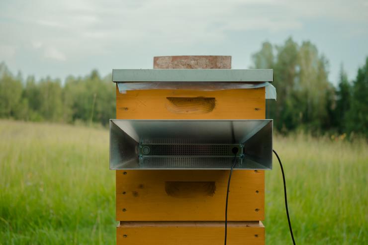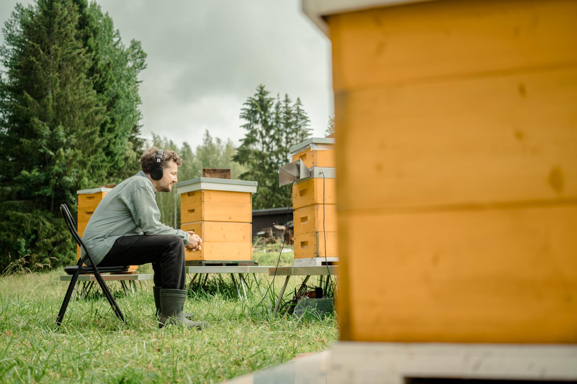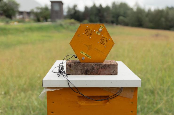 “Hive Radio” is a portable device to allows listening to the beehive. A wired microphone is placed inside of the beehive and attached to the “Hive Radio”. The speaker is playing live what is happening inside. It is also possible to attach headphones for better listening experience.