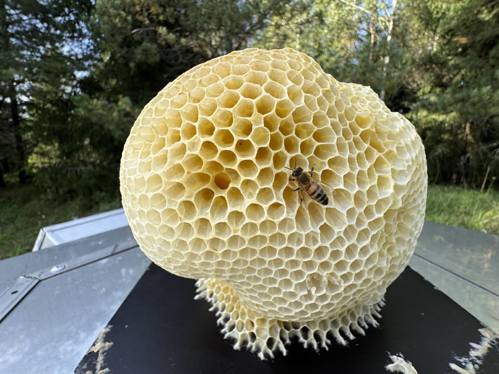 The “Wav Studio” gives a safe and easy ability to co-create sculptural work together with the bees, marvel and research their abilities to construct in 3D space. It also allows for the visitors to peek inside of the hive safely.